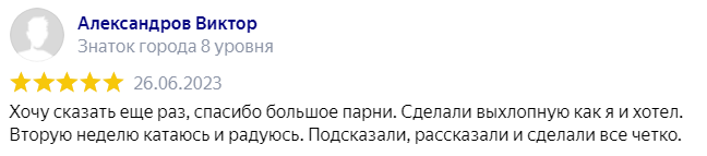 Мы занимаемся ремонтом и тюнингом выхлопных систем уже более 6 лет за это время мы открыли 4 полноценных сервиса, отобрали самых лучших и качественных поставщиков, вырастили команду мастеров, которые выполняют работу быстро и качественно. Все это для того, что бы наши Клиенты могли получить самый качественный и быстрый ремонт и тюнинг выхлопной системы в Москве!